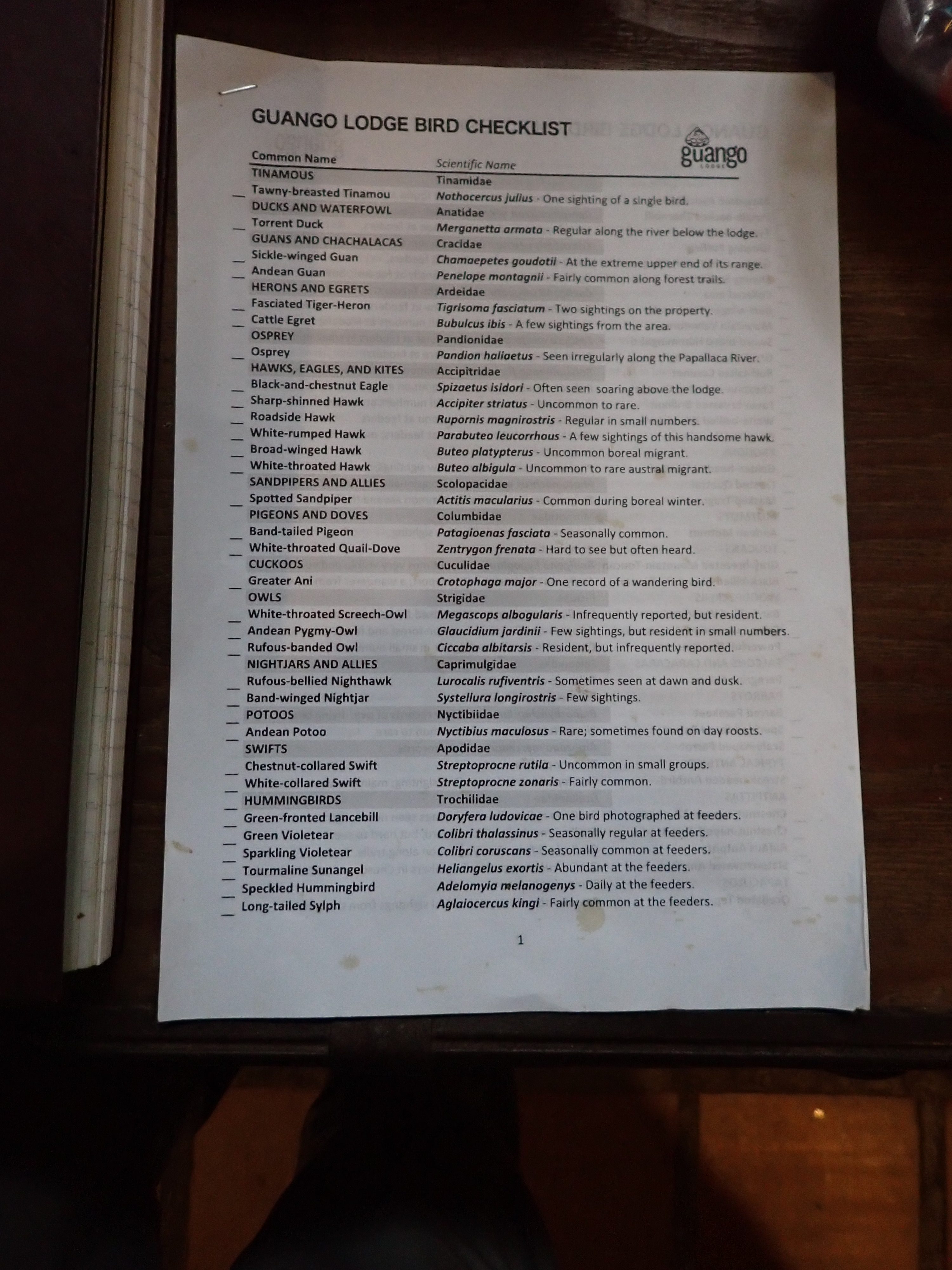 This will turn out to be one of the shortest posts, I think. Aside from the huge number of tropical birds I heard and viewed (but never got any good photos) the critters we saw in Ecuador were mostly the domestic kind. The San Jose de Puembo had a neat checklist at the front desk that showed all the birds that are typically seen on their property.